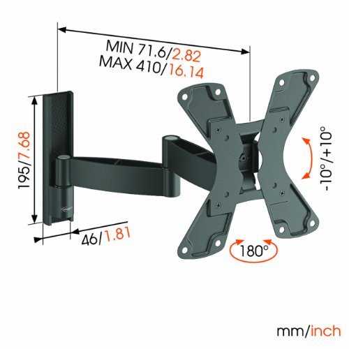 NUOVO VOGELS 8353020 SUPPORTO DA PARETE WALL 1145 WALL 1145 BLACK TURN 180 WALL MOUNT 19- 32 INCH