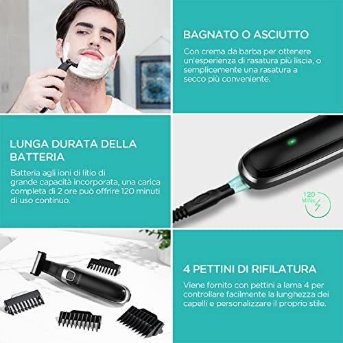 SICURO & CONFORTEVOLE - Il design della lama è a doppio taglio, per rifinire i peli del corpo in entrambe le direzione mentre protegge la tua pelle, per una rasatura perfetta con meno irritazioni e garantisce una rasatura confortevole, anche sui peli più lunghi. Puoi radere in entrambe le direzioni e rifinire con precisione per allineare il tuo stile in pochi secondi.