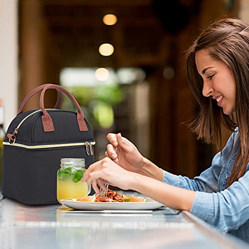 Vogshow Borsa Termica Porta Pranzo, 9L Doppio Strato Impermeabile Borsa Frigo Piccola Pranzo per Uomo Donna Bambino, Lunch Bag con Tracolla per Ufficio e Scuola (Nero)
