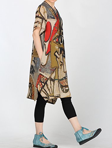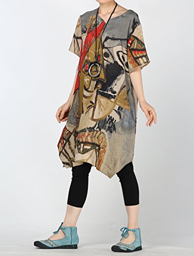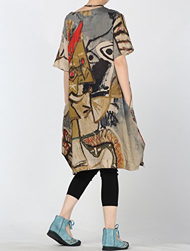 Vogstyle Estate Donna Tunica Superiore Astratto Stampa Abito Baggy con Tasche Grigio XL