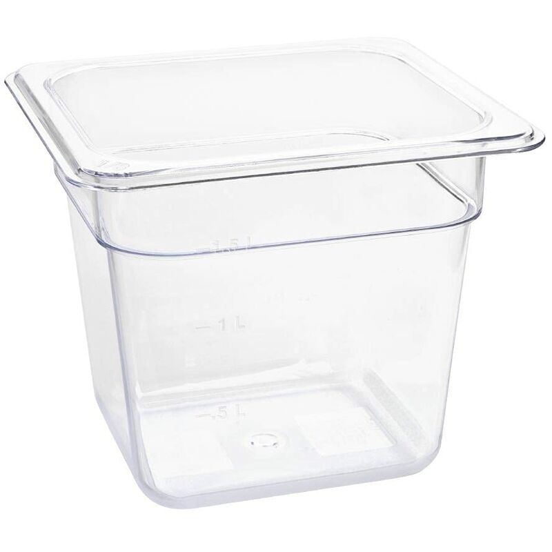 1/6 dimensioni 176 x 162 mm Range di temperatura da -40 C a 100 C Coperchio sono vendute separatamente virtualmente infrangibile in policarbonato rimane freddo al tatto per una gestione efficiente.coperchi e contenitori sono lavabili in lavastoviglie per una facile pulizia.Range di temperatura da -40?C to 100?C. in policarbonato è resistente al lavaggio in lavastoviglie e padelle sono state progettate per asciugare rapidamente.I contenitori sono leggero e impilabile. Coperchio venduto separatamente.