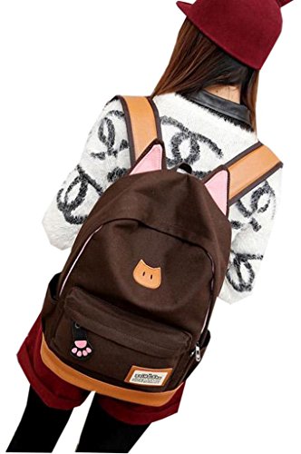 La Vogue Oreilles de Chat Dessin Animal Ecole-Japonais Style Sac a dos Cartable Scolaire - Sac à dos de ordinateur - Sac à dos de voyage (café)