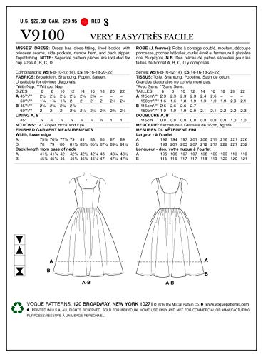 Vogue Patterns Vogue 9100-Cartamodello per Abiti da Donna, Taglie 38-40-42-44-46, Tessuto Largo, Multicolore/Colore, Size A5 (6-8-10-12-14)