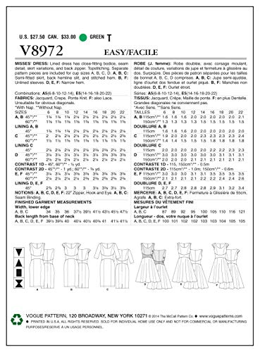 Vogue V8972 E5 14/16/ 18/20/ 22 - Cartamodelli per Abiti da Donna, Multicolore