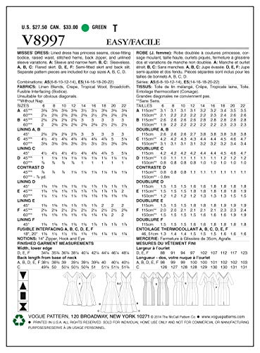 Vogue V8997 A5 6/8/ 10/12/ 14 - Cartamodelli per Abiti da Donna, Multicolore