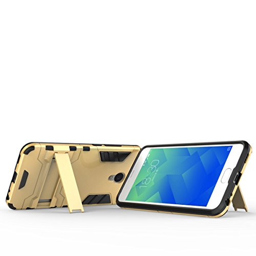Voguecase Per Meizu M5, 2 in 1 Duro Cover Case Difensore Bumper Antiurto Posteriore with Assorbimento-Urti [Kickstand] Armatura Cell Cover Duro PC + Morbido TPU Leggero Gomma Protettivo Custodia Case Cover (2 in 1-d'oro) Con free Stilo Penna