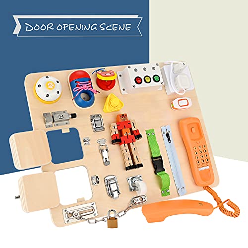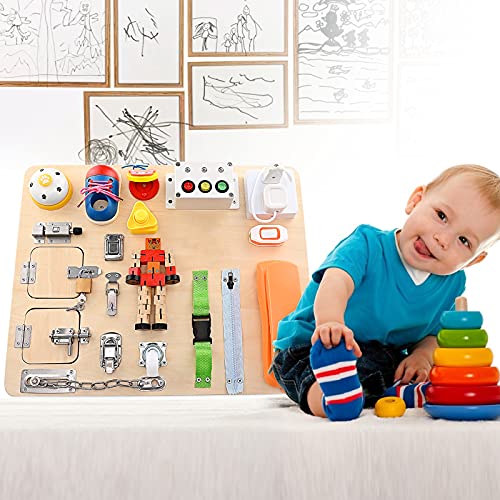 Vogvigo Busy Board Giocattoli in Legno Cubo attività per Bambini 20 in 1 Gioco in Legno Il Puzzle delle Serrature e Lacci per Bambini di 2 Anni Regalo di Compleanno per 1 2 Anni