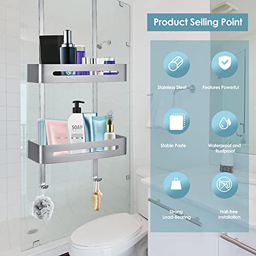 Vogvigo Portaoggetti per Doccia sospeso a 2 Livelli Spazio Portaoggetti per Doccia sopra la Porta in Lega di Alluminio Comodo e Resistente alla ruggine Supporto per Doccia sospeso con 2 Ganci