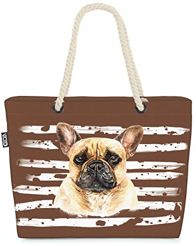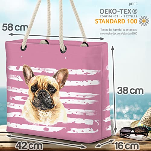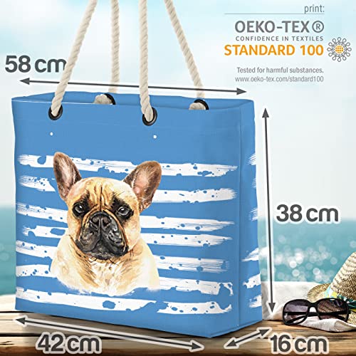 VOID XXL Borsa da spiaggia Bulldog francese Shopper 58x38x16cm 23L beach bag cane, Kissen Farbe:Blu