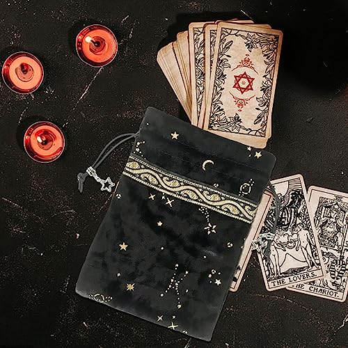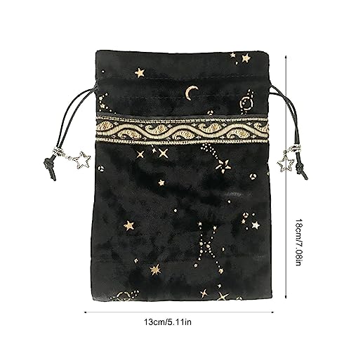 Voihamy Custodia per carte dei tarocchi, borsa in velluto per tarocchi, 13 x 18 cm, motivo stella e luna, per carte di tarocchi, dadi, sacchetti regalo a mano, Nero, 13x18cm