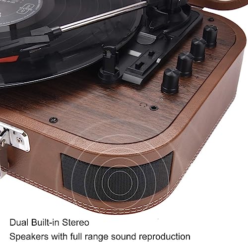 VOKSUN Giradischi, Giradischi Vinili Bluetooth Vintage con 33/45/78 RPM, Giradischi con 2 Casse Integrate, Giradischi Vinili Vintage, RCA/Aux/USB/LP, Design Valigia, Giradischi Vinile (Marrone Chiaro)