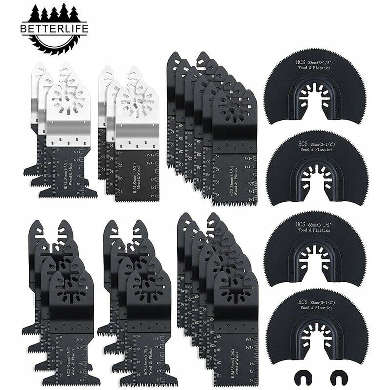 Realizzato in acciaio ad alto tenore di carbonio e utilizza tecniche di produzione di alta qualità per garantire velocità di taglio, tolleranza all'usura e durata superiori. Marcatori Lunghezze incorporate su entrambi i lati, un lato è in pollici e l'altro in centimetri, assicurati di ottenere tagli precisi facilmente e rapidamente mentre lavori con esso. 2 tipi di lame di precisione appositamente progettate hanno denti ondulati più lunghi che sono specificamente progettati per fornire tagli più rapidi e puliti in legno e plastica. 30 pezzi contengono 6 tipi di lame diverse, per tagliare legno, metallo, plastica e altri materiali, ogni tipo di lama per sega è specifico per uno scopo particolare. Le nostre lame oscillanti possono soddisfare una varietà di esigenze, che possono essere utilizzate per l'officina, la casa o altri luoghi. Elenco kit da 32 pezzi: 6 denti fini in carbonio alto 34 mm lame per seghe 6 lame per seghe a denti grossi ad alto tenore di carbonio da 34 mm 4 lame