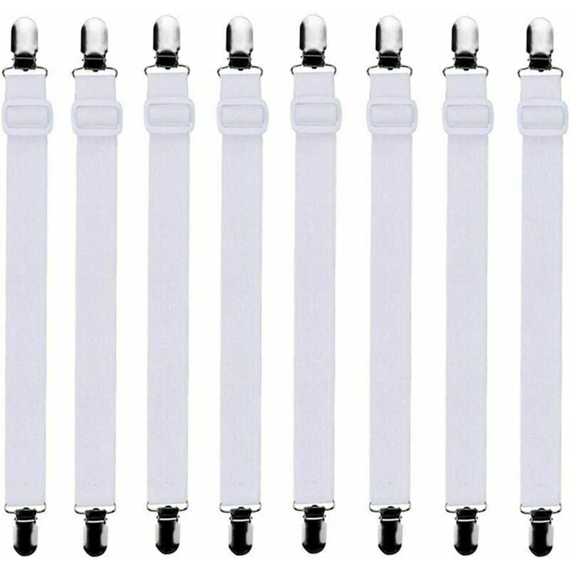 La lunghezza è regolabile, con grande flessibilità per soddisfare le esigenze della famiglia. PROTEZIONE: Non danneggia il tessuto, la fibbia in metallo garantisce una presa salda. Robusto: la chiusura è realizzata con una robusta clip in metallo, può fissare saldamente le foglie e non è facile da rompere, può essere utilizzata a lungo. Multifunzione: design professionale regolabile, adatto a tutti i tipi di lenzuola, letti ospedalieri, letti gonfiabili, letti regolabili, letti ad acqua, biancheria da letto. Cravatta solida: il letto singolo è molto facile da usare. Non sono necessari strumenti, controlla che lo spessore sia in posizione. Materiale: metallo + nylon Misura della cintura adatta: larghezza 2,5 cm, lunghezza 20-55 cm Nota: per la misurazione manuale, c'è un errore di 1-3 cm, per favore capisci. Colore: bianco Quantità: 8