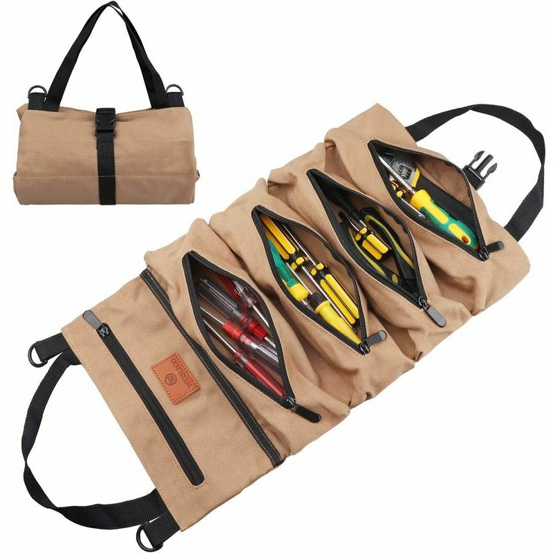 Ben fatto : La custodia per attrezzi avvolgibile è realizzata in robusta tela 16A, leggera e resistente. Resta organizzato: 5 tasche con cerniera per organizzare piccole pinze, chiavi inglesi, cacciaviti, prese, pinze e morsa, manometro o strumenti piatti, tieni tutte le tue prese organizzate. Dimensioni perfette: dimensioni srotolate: 47 x 27,9 cm. Cerniera e fibbia lo rendono facile da arrotolare e trasportare. Design funzionale: molto funzionale per proteggere/trasportare i tuoi strumenti. Perfetto se sei un appaltatore, riparatore HVAC, carpentiere, idraulico, corniciaio o elettricista.