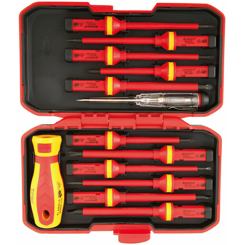 Impugnatura ergonomica per il massimo comfort e una coppia eccezionale. Include vari tipi di punte per soddisfare le diverse esigenze elettriche. Contiene estremità magnetiche, attira facilmente le viti. La staffa dal design isolato resiste a tensioni fino a 1000 V. Realizzata in acciaio al cromo-vanadio, temprato per la massima resistenza all'usura. Punta a innesto dal design isolato, facile da installare e sostituire le punte, veloce ed efficiente. Caratteristiche: Colore cacciavite: rosso + nero + giallo Colore impugnatura: rosso + giallo Tensione di resistenza: 1000V Materiale cacciavite: acciaio al cromo vanadio Materiale impugnatura: PP + TPR Lunghezza impugnatura: ca. 10 cm Lunghezza del tester di tensione: ca. 14 cm / 5,5 pollici Il set include: Cacciavite a taglio: 0,5x3,0x100, 0,8x4,0x100, 1,0x5,5x100, 1,2x6,5x100 < p>Cacciavite Phillips: PH1x80, PH2X100 Cacciavite Pozidriv: PZ1x80, PZ2x100 Cacciavite Torx:T10x100, T15x100, T20x100 Tester di tensione < p>Maniglia maniglia