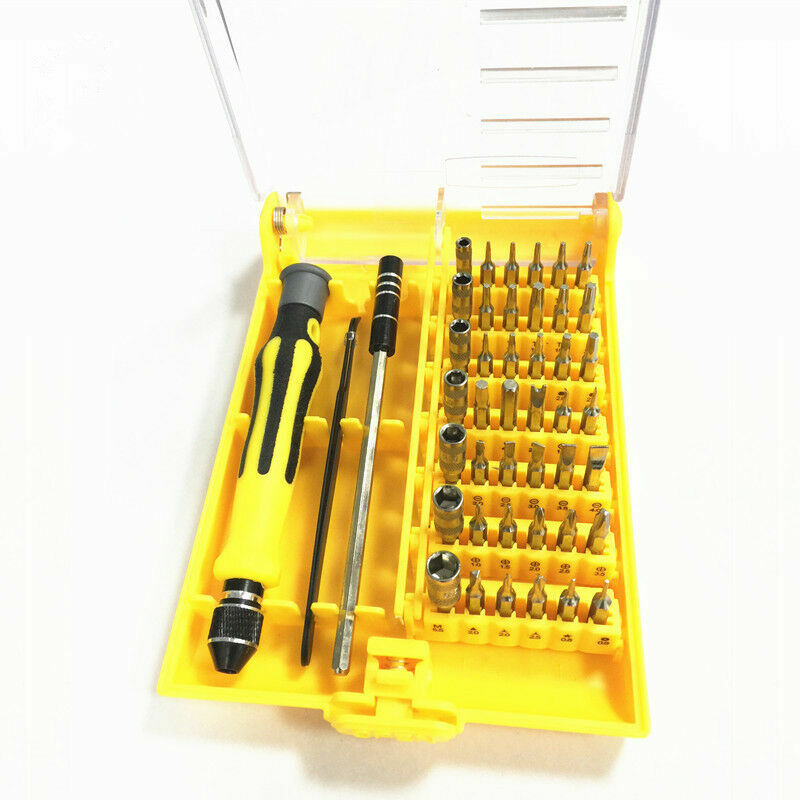 APPLICAZIONI: il set di cacciaviti di precisione 45 in 1 che può essere ampiamente utilizzato per riparare iPhone, iPad, Macbook, PC TV, occhiali, macchine CD, apparecchiature di comunicazione e altri piccoli elettrodomestici. < p>FACILE DA CONSERVARE: tutte le punte per cacciavite sono riposte in una custodia robusta e ben organizzata senza che cadano. ASTA DI PROLUNGA: il set di cacciaviti professionale viene fornito con un'asta di prolunga. L'estensione può essere inserita nell'impugnatura per regolazione della lunghezza. L'asta resistente antiscivolo garantisce maggiore comfort e praticità. PESO LEGGERO - Strumenti hardware portatili professionali con peso perfetto e design compatto e custodia in plastica per un facile trasporto Pinzette: con pinzette, non è necessario utilizzare il cacciavite con le mani, mantieni la tua vita più pulita. Caratteristiche: Nuovo set di utensili manuali 45 in 1 precisi e intercambiabili. p> Elevata durezza e buona tenacità. Strumenti di