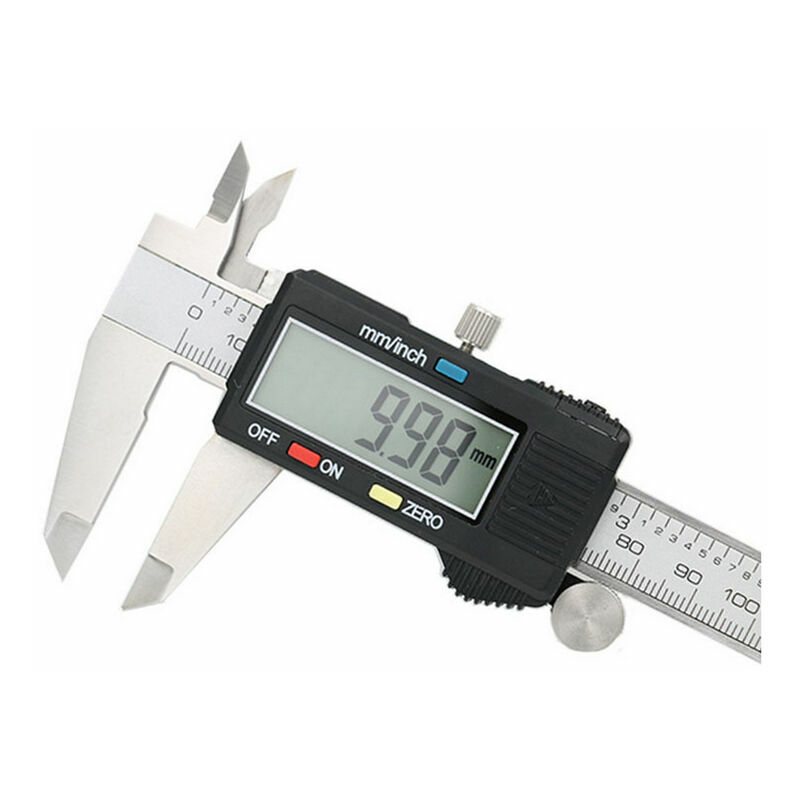 Calibro digitale, calibro digitale elettronico a grande schermo in acciaio inossidabile, precisione 0,01 mm Stile: 0-150 mm, display in plastica Caratteristiche: Esterno e ganasce di misurazione interne viti di bloccaggio Ampio display LCD Sistema di misurazione della capacità lineare lama del misuratore di profondità impostabile in qualsiasi momento Superficie di misurazione sfalsata Batteria facile da sostituire (non inclusa) Custodia in plastica rigida acciaio inossidabile temprato< /p> Intervallo di misurazione 0-150 mm Errore di 0,01 mm caratteristica principale: 1. Con interruttore di alimentazione (ON/OFF) 2. Interscambio metrico e in pollici in qualsiasi posizione (pollici/mm) 3. Azzeramento di qualsiasi posizione (ZERO) 4. Imballaggio a colori in una scatola di plastica