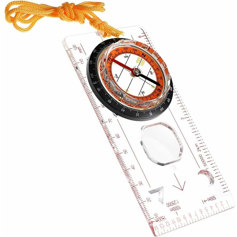 Foro per cordino sulla piastra di base per un facile trasporto (cordino incluso) Adatto per la maggior parte delle attività indoor come la manutenzione della casa e le attività di pulizia all'aperto come campeggio, lettura di mappe, pesca, escursionismo, pesca notturna, volo notturno, zaino in spalla Realizzato in plastica resistente in grado di funzionare in condizioni meteorologiche estreme Scale in pollici e millimetri per la mappatura o la tracciatura. Bussola goniometro per misurare la direzione Con lo speciale design della luce fluorescente, puoi usarla e leggere i dati su di essa in un ambiente buio dopo aver assorbito abbastanza luce solare