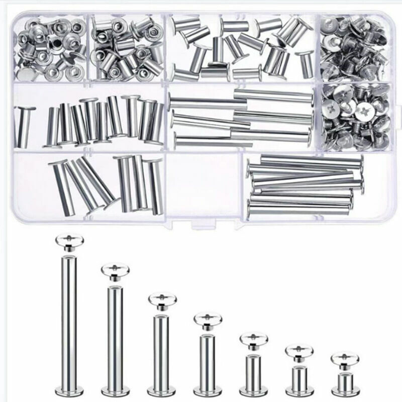1. Kit di viti di rilegatura fai-da-te di alta qualità. 2. Colore: argento. Quantità: 80 set (160 pezzi), 80 pezzi di top + 80 pezzi di viti. Dimensioni: M5 x 5/8/12/18/25/35/45 mm. Lunghezza del filo superiore: 4 mm e 5 mm. 3. Materiale: metallo + nichelato, nichelato sulla superficie che non è facile da erodere e arrugginire. 4. Applicazione: adatto per artigianato in pelle, rilegatura, documenti, scrapbooking, foto, libri, rilegatura di album, riparazione di cinture, artigianato, ecc. Colore: argento