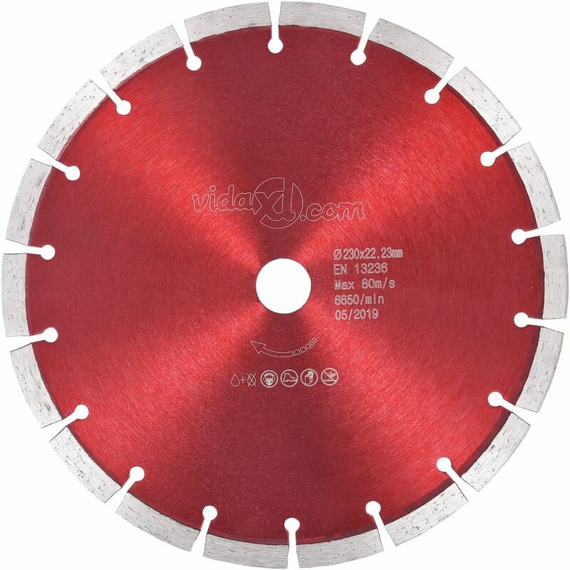 Dotato di denti, questo disco diamantato, se montato su seghe da banco, troncatrici e smerigliatrici, è adatto per il taglio di cemento, granito, mattoni e muratura, altre applicazioni industriali e artigianali, come porcellana, gres. I denti conferiscono alla lama diamantata velocità di taglio più elevate pur mantenendo un taglio regolare. L'acciaio e il diamante di alta qualità comportano una bassa perdita di materiale e quindi una durata ottimale. Inoltre, il disco diamantato è realizzato mediante spremitura a freddo ed è adatto sia per il taglio a umido che a secco. Colore: rosso Materiale: acciaio, lega con diamante li> Diametro: 230mm Diametro foro centrale: 22,23mm Lunghezza bordo: 10mm < li>Velocità massima: 80 m/s Velocità operativa massima: 6.650 giri/min Con denti Adatto per taglio a umido e a secco