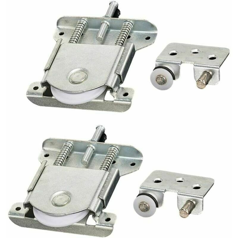 KIT RULLI PER ANTE SCORREVOLI ARMADIO: La confezione include 2 ruote per ante scorrevoli e 2 ferramenta. MATERIALE RULLI PER ANTE SCORREVOLI: Le ruote per ante scorrevoli dell'armadio sono realizzate in lega di ferro ecologico, forte e durevole, resistente e difficile da dissolvenza. CAPACITÀ DI CARICO: 20KG. Rendi la tua vita più comoda, non hai più bisogno di un riparatore e non c'è bisogno di cambiare un nuovo guardaroba FUNZIONAMENTO SILENZIOSO: il design della puleggia offre una migliore regolazione e uno scorrimento più fluido, stabile e sicuro da usare. Con il tampone di smorzamento, funzionerebbero in modo silenzioso e solido, proteggendoti da forti rumori e potenziali lesioni dovute all'improvviso sbattere della porta.,APPLICAZIONE: si adatta alla maggior parte delle porte scorrevoli di armadi, armadi, finestre, armadi, vetrine e scarpiere, ecc.