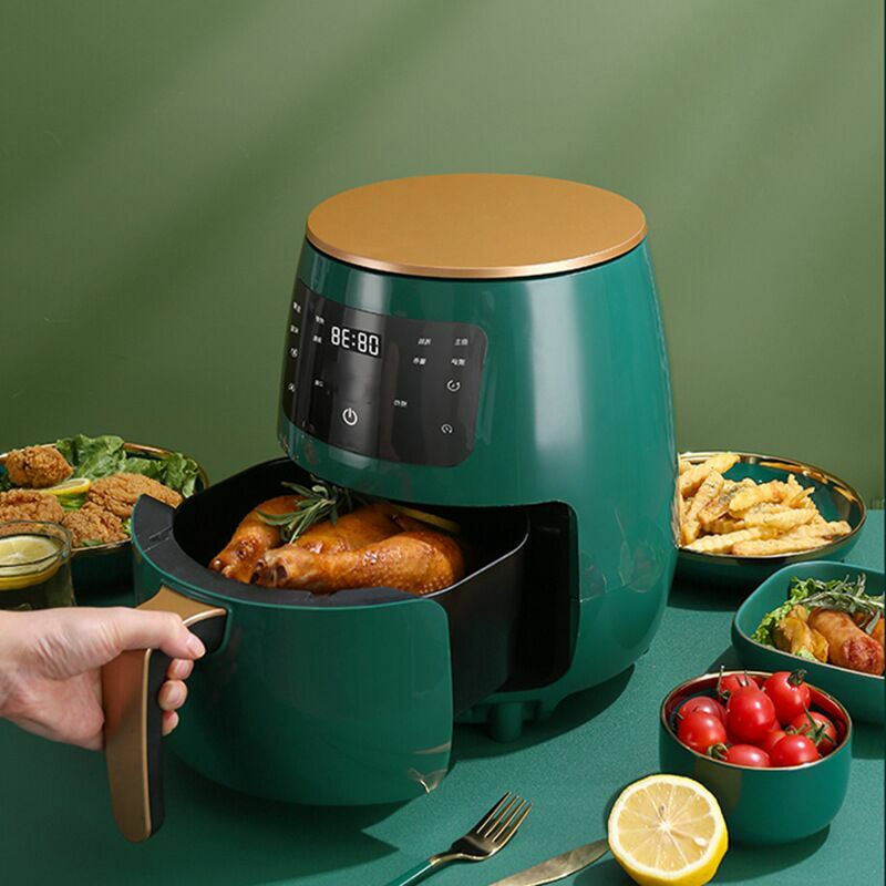 Friggi in modo più sano con meno olio. Approfitta dell'avanzata tecnologia di circolazione dell'aria rapida a 360°, la friggitrice ad aria cuoce croccante all'esterno e tenera all'interno con un favoloso contrasto di consistenza, sapore delicato ma fino all'85% in meno di grassi. Multifunzionale e facile da usare. Questa friggitrice ad aria con il touch screen digitale integrato ti consente di gustare una varietà di cibi PRESET: toast, patatine fritte, patatine surgelate, maiale, coscia di pollo, gamberi, bistecche, pesce, pizza e torta. oppure puoi anche personalizzare facilmente l'impostazione per cucinare il cibo esattamente come lo desideri.,Facile da pulire e sicurezza garantita. Il cestello antiaderente, facile da pulire e rimovibile e la pentola progettata con la robusta maniglia offrono un funzionamento intuitivo;