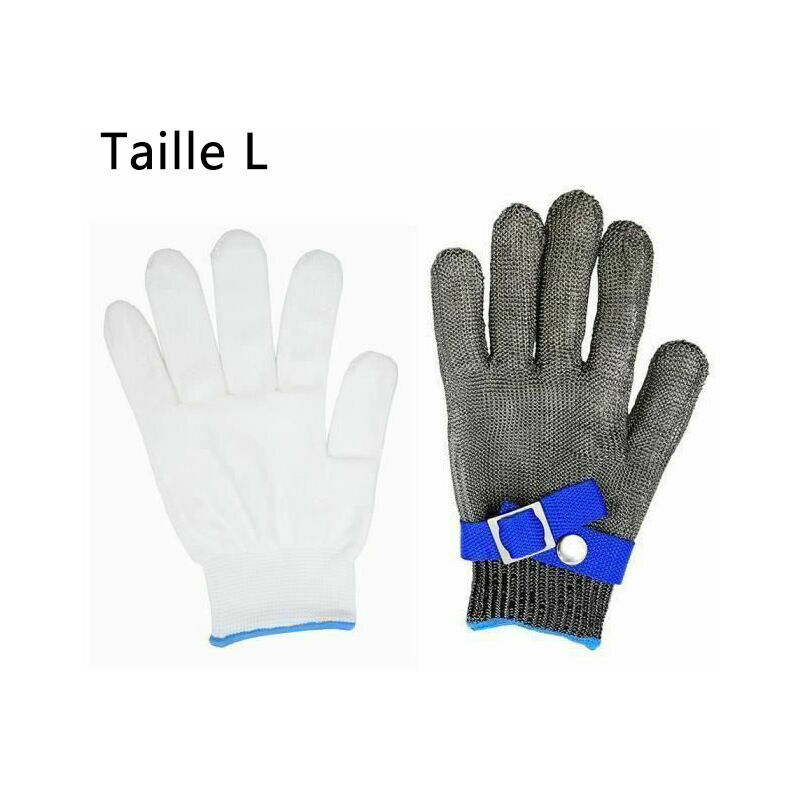 Materiale: treccia di filo d'acciaio Caratteristiche: antitaglio Realizzato in fibra di polietilene ad alta resistenza e filo di acciaio inossidabile. Sicuro al 100% per alimenti, è facile mantenere puliti i guanti.Si prega di proteggere le dita durante il taglio, affettare, sbucciare, tagliare a cubetti e sbucciare in cucina. È ideale anche per giardinaggio, macchinari e costruzioni, pesca e falegnameria. Resistenza al taglio di livello 5, protegge le mani dalla mattina alla sera. La struttura interna a trama piatta ti rende comodo da indossare. La fibbia in metallo regolabile può aiutarti a trovare le condizioni di utilizzo più adatte. Caratteristiche: È realizzato in filo di acciaio inossidabile antiruggine al 100% e ha 5 livelli di protezione per proteggere le dita da lesioni in situazioni pericolose. La fibbia in ottone può regolare la tenuta del guanto ed evitare che cada, migliorando la sicurezza. I guanti di cotone bianco possono ridurre la sensazione di fastidio alla mano