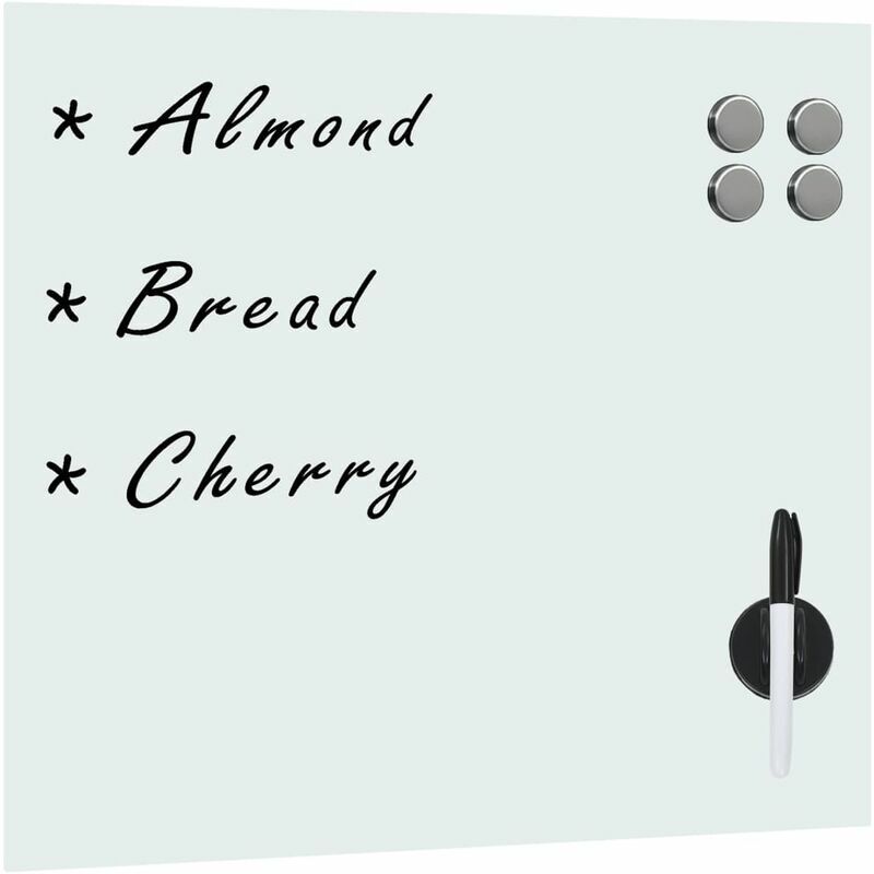 La lavagna magnetica in vetro cancellabile a secco offre tutti i vantaggi di una lavagna tradizionale in un modo più moderno ed ecologico. Il pannello di vetro è dotato di vetro temperato di sicurezza, che non si macchia, si graffia o si ammacca facilmente. Puoi attaccare fogli o appunti alla lavagna con il magnete incluso. Inoltre, puoi scrivere sulla lavagna magnetica con una penna cancellabile a secco bianca ed è facile da pulire con il tergicristallo incluso. I materiali necessari per il montaggio a parete sono inclusi, semplificando il fissaggio del pannello a qualsiasi parete della casa, dell'ufficio o della scuola. La lavagna è anche facile da montare. Colore: bianco Materiale: vetro temperato Dimensioni: 50 x 50 cm (L x A ) Spessore del pannello: 4 mm Facile da montare a parete Materiale di montaggio incluso Il 39;