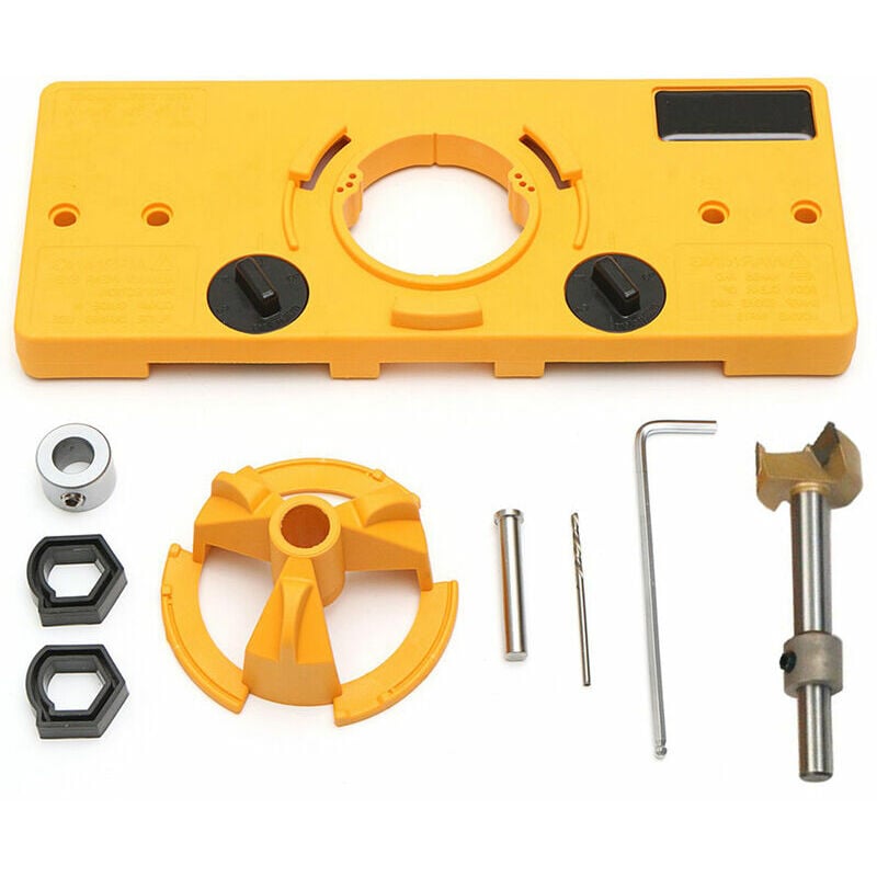 Elemento: dispositivo di punzonatura Materiale: plastica tecnica strumento giallo Dimensione del pacchetto: 537g/18,94 once Peso del pacco: 340*260*100mm/13,39*10,24*3,94 Imballaggio Elenco: 1 * hole localisate 1 * supporto 1 * Hole-Cut 1 * Limit Ring 1 * Posizionamento stinco 1 * Trapano 1 * Chiave 2 * Accessori ausiliari