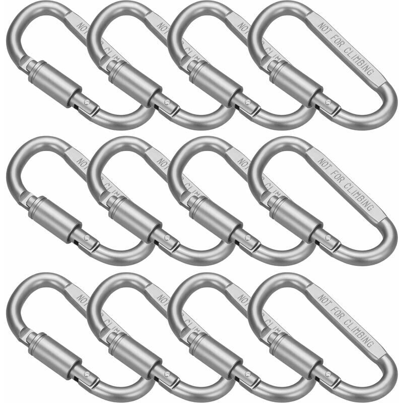 Caratteristiche: Realizzato in robusta lega di alluminio ad alta resistenza. Superficie lucida per resistente all'acqua, portatile e durevole. Facile fissaggio allo zaino, portachiavi, bottiglia come gancio.Può essere utilizzato come connettore per collegare tende o corde.Un ottimo accessorio per il campeggio all'aperto, l'escursionismo, il backpacing, ecc. Caratteristiche: Materiale: lega di alluminio Peso: 264 g / 9,3 once Lunghezza: 8 * 4, 2 cm / 3,1 * 1,7 pollici Elenco dei pacchetti: 12 * moschettone "