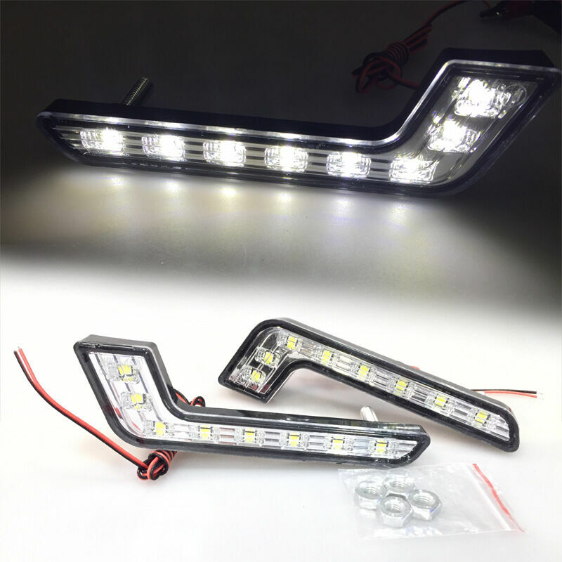 Accessori universali per tutte le auto, camion, SUV, rimorchi, camper. Ogni lampada ha 8 lampadine LED luminose ad alta potenza È ideale come accessorio decorativo per l'uso come luci di marcia diurna/luci di marcia (DRL), fendinebbia, paraurti/griglia/luci incluse. Luci di marcia diurna super luminose per una guida sicura. Facili da installare;