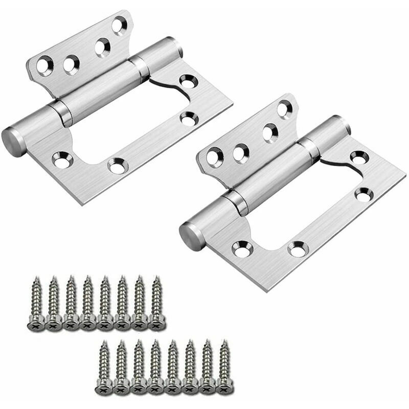 Un set di 2 cerniere per porta con viti di montaggio, vedere l'immagine per informazioni dettagliate sulle dimensioni. --Le nostre cerniere sono realizzate in acciaio inossidabile spesso 3 mm con buona tenacità e forte capacità portante. - Adotta un design aggiornato dei cuscinetti a sfera per un rotolamento flessibile e un'apertura e una chiusura fluide. - Le cerniere per porte per impieghi gravosi possono essere installate direttamente senza slot per una facile installazione. --Ci sono 8 fori di montaggio distribuiti attorno a ciascuna cerniera per una maggiore stabilità e si adattano a tutte le porte. --Questa cerniera può essere utilizzata per porte della camera da letto, porte della cucina, porte dei mobili, ecc.