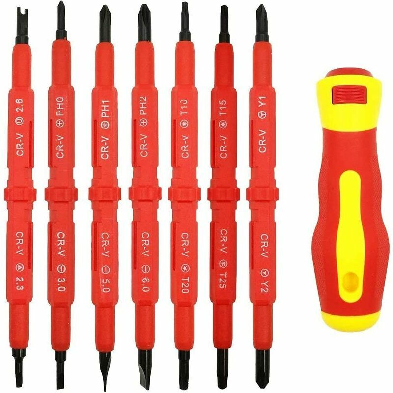 Versatile: ogni asta di cacciavite è contrassegnata con il modello corrispondente, è molto facile da distinguere e installabile, 14 in 1, per soddisfare le diverse esigenze di lavoro. Imballaggio in scatola, facile da trasportare e conservare le parti. Forte: testa magnetica del cacciavite con magnete, facile assorbimento del timer come una vite metallica, per evitare la perdita di parti, più facile da usare. Cromo-vanadio di alta qualità: lega di acciaio con trattamento termico, elevata durezza e buona tenacità e resistenza. Guscio lama: plastica resistente e materiale speciale che lo rende durevole e non si rompe facilmente. Impugnatura ergonomica: con impugnatura ergonomica in TPR e pulsante su di essa, ti aiuta a operare molto facilmente. È #39;