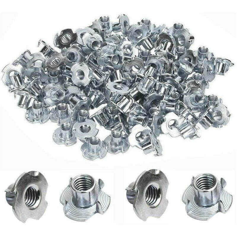 •I nostri dadi sono realizzati in acciaio al carbonio di alta qualità per resistenza alla corrosione e lunga durata. •Questi dadi ad artiglio aiutano a serrare la vite ei quattro artigli impediscono la deformazione del dado. •Basta inserire i dadi negli appositi fori e le 4 punte li manterranno in posizione. •Un set di 100 dadi a T per soddisfare le diverse esigenze, ogni dimensione è M4 x 8 x 15 mm. •Ideale per fai da te, carpentieri, muratori, idraulici e altro ancora.