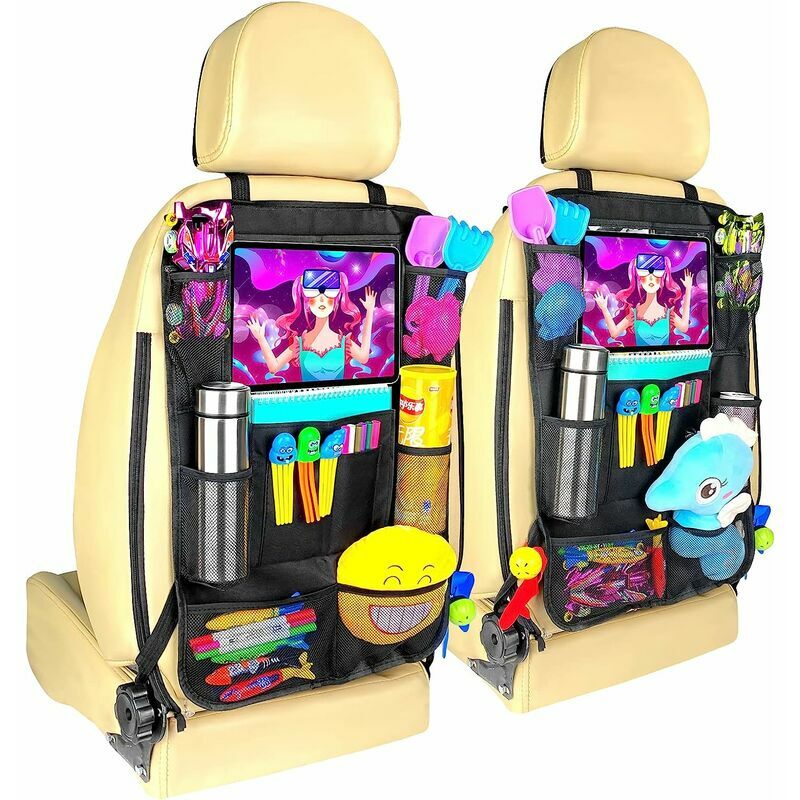 Più tasche, più spazio di archiviazione : Diversi tipi di tasche, tablet trasparente e finestra per iPad, lascia che il sedile posteriore si goda il momento felice di guardare il tablet in movimento. Fornisci più spazio per riporre bevande, snack, giocattoli, riviste e libri. Rendi il tuo viaggio più piacevole e rilassante. Facile da installare : La protezione del seggiolino auto si aggancia semplicemente al poggiatesta ed è fissata alla parte inferiore del sedile con l'elastico inferiore da 39;