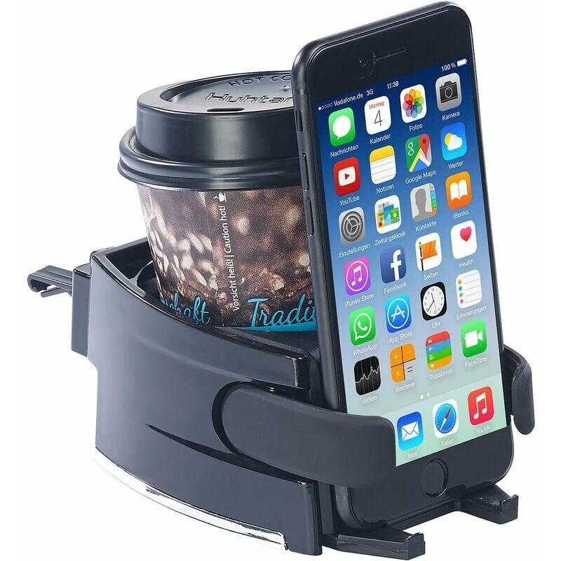 Adatto a quasi tutte le griglie di ventilazione delle auto. Facile installazione senza attrezzi. Ideale per tazze da caffè e lattine da asporto. La ventilazione raffredda le bevande in estate e le riscalda in inverno. Morsetto gommato per dispositivo mobile per una presa sicura. Supporto di montaggio gratuito per bevande e smartphone. Portabevande integrato: per una presa sicura. Dimensioni: 85 x 68 x 126 mm. Peso: 120g. Ganci di varie dimensioni: da fissare in quasi tutte le ventilazioni dell'auto * Comodo ingresso per l'aria calda e fredda: mantiene le bevande calde d'inverno e fresche d'estate. Il supporto include ganci di montaggio (3 paia) e istruzioni in tedesco (non possiamo garantire che le istruzioni siano in inglese). Portabicchieri per tutte le tazze, bottiglie e lattine di caffè. un diametro da 54 a 73 mm . Supporto per smartphone gommato con base regolabile in altezza: presa sicura senza graffi, per dispositivi mobili con una larghezza da 53 a 85 mm. * Non adatto per