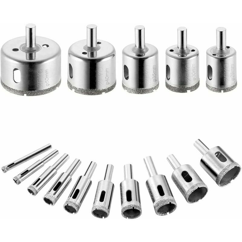 15 diverse dimensioni di punte diamantate: 6 mm, 8 mm, 10 mm, 12 mm, 14 mm, 16 mm, 18 mm, 20 mm, 22 mm, 25 mm, 28 mm, 30 mm, 35 mm, 40 mm, 50 mm. Adatto per praticare fori per vetro, bottiglie di piastrelle, barattoli, gres porcellanato in fibra di vetro ceramica, marmi di ardesia, pietra di granito chiaro (soprattutto per vetro E piastrelle)., la velocità del foro è molto veloce, facile evacuazione del truciolo e così via. Inizialmente, forare lentamente con un angolo di 45° (non è consentita la perforazione verticale!) dopo che appare una posizione fissa, quindi tenere lentamente la macchina e gli oggetti contemporaneamente in orizzontale. Grazie per aver acquistato nel nostro negozio, in caso di problemi con l'acquisto e l'utilizzo, contattaci. Ti serviamo da un momento all'altro. Questo set di seghe a tazza diamantate viene fornito con 15 punte da trapano di diverse dimensioni. I diametri di apertura sono 6/8/10/12/14/16/18/20/22/25/28/30/35/40/50 mm, che possono soddisfare la