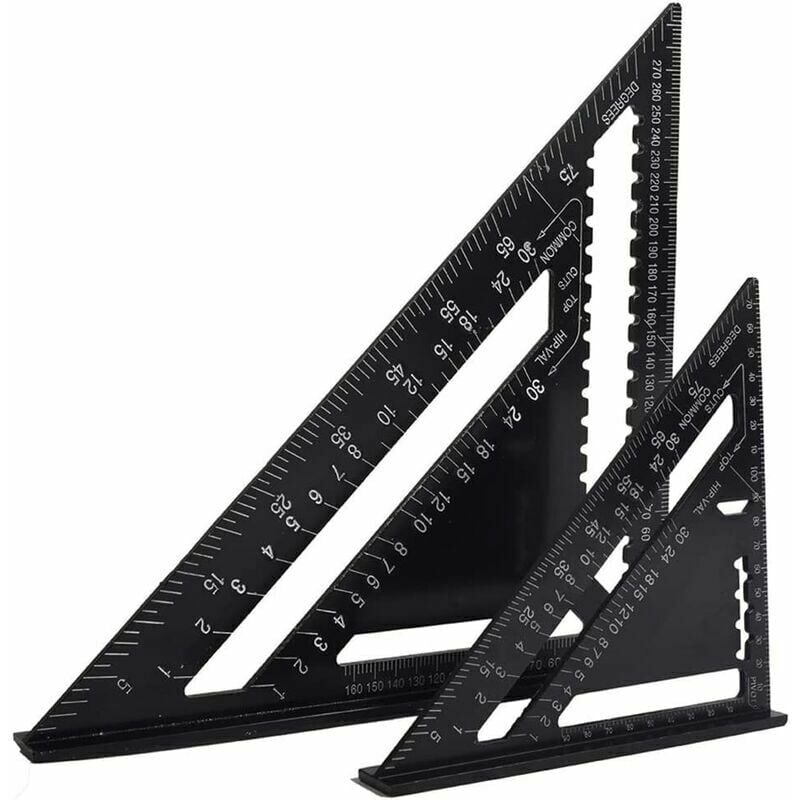 Contenuto: 1 righello triangolare metrico 18 cm. 1 righello triangolare metrico 30 cm Stile metrico: include righello triangolare metrico 18 cm 18 cm e 30 cm, con finitura nera opaca per evitare l'abbagliamento, resistente alla corrosione e durevole, non facile da rompere. Nessun bordo tagliente, non ti farà male alla mano. Qualità premium: il gallone quadrato è realizzato in lega di alluminio di alta qualità, elevata durezza, forte tenacità, non facile da arrugginire. Ampio utilizzo: questa squadra da falegname può essere utilizzata come goniometro, mitra, guida per sega da disegno, squadra per inquadratura e righello, ideale per tutti i progetti di costruzione e ristrutturazione. < p>Facile segnare le linee di taglio: questo righello triangolare utilizza un design del bordo più spesso, può essere utilizzato direttamente con la sega contro il quadrato per tagli trasversali o tagli a gomito utilizzando la scala grave, consentendo di contrassegnare rapidamente e con precisione le