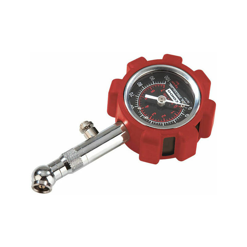 P > spiegazione < / p > < p > per auto, camion, moto, ecc. < / p > < p > proteggere con rivestimento in gomma < / p > < p > Testa girevole a 45° per facilitare il collegamento alle valvole dei pneumatici < / p > < p > poiché il puntatore è fisso dopo la misurazione, è consentita una lettura accurata < / p > < p > con il pulsante Reimposta < / p > < p > campo di misura: 0 - 7 Bar (0 - 100 PSI) < / p > < p > grafico di conversione inversa < / p > < p > dimensioni (L x A): circa 11,5 x 5,5 x 2,5 cm < / p >