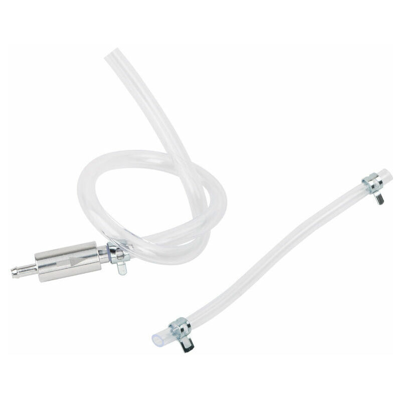 aria da un sistema a secco. La valvola interna può impedire che l'aria venga aspirata nel sistema, il che rende la tua guida più sicura. È una scelta perfetta se hai bisogno di un nuovo spurgo dei freni per moto. [Specifiche del prodotto] -Lunghezza totale del tubo: 500 mm , Lunghezza della valvola: 53 mm , Diametro interno del tubo di ingresso dell'olio: 4 mm, diametro esterno: 6 mm, lunghezza: 150 mm , Diametro interno del tubo di uscita dell'olio: 5 mm, diametro esterno: 8 mm, lunghezza: 350 mm [Facile da installare] - Il kit di spurgo del freno della motocicletta della siringa è facile da