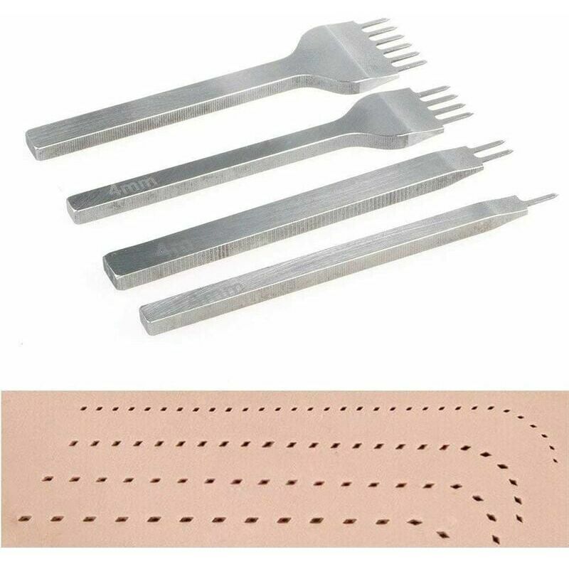 Kit di strumenti per punzonatura in pelle da 4 pezzi da 4 mm Artiglio in pelle fai-da-te Perforatrice per fori Cucito Diamante Laage Design della maniglia antiscivolo, adotta metallo ad alta resistenza, aspetto raffinato e forte durezza Quattro diversi le dimensioni rendono facile perforare la pelle, mettere la pelle su un cuscino morbido quando si utilizza il punteruolo Normalmente utilizzare con martello di nylon, compasso, aghi da cucito e punzone. Specifiche Materiale: acciaio inossidabile Colore: argento Lunghezza: 10 cm/4 pollici Tipo di passo: 4 mm (4 /25in ) Modello: 1 pin, 2 pin, 4 pin, 6 pin Utilizzo 4 mm: adatto per medie pelletteria di spessore, come portachiavi e portafogli in pelle Nota Quando si perfora il foro, dovrebbe essere perpendicolare alla superficie della pelle per evitare non si rompa a causa dell'inclinazione! Fai Prestare attenzione alla forza del martello, prima leggero e poi pesante. Quando si perfora la pelle, utilizzare con il cuscinetto e