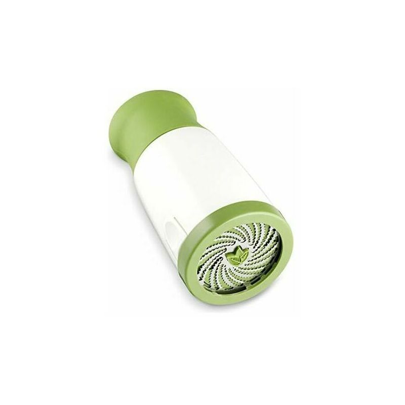 Sebbene l'intero macinino per erbe sia lavabile in lavastoviglie, si consiglia di smontare le parti per pulire efficacemente tutti i componenti. Rimuovere la parte superiore del macinino per erbe. Risciacqua il macinino per erbe per rimuovere eventuali erbe rimanenti dall'unità. Tieni il macinino per erbe con le lame rivolte verso l'alto. Stringere con una mano le due linguette ai lati del corpo. Con l'altra mano, ruota l'anello di bloccaggio in senso antiorario finché non è libero dal trita erbe. Se fai attenzione, rimuovi la lama rotante e la lama fissa. Rimuovi l'inserto dal corpo. Le parti sono pronte per essere pulite. Processo di assemblaggio: inserisci l'inserto nel corpo e installa prima la lama fissa.