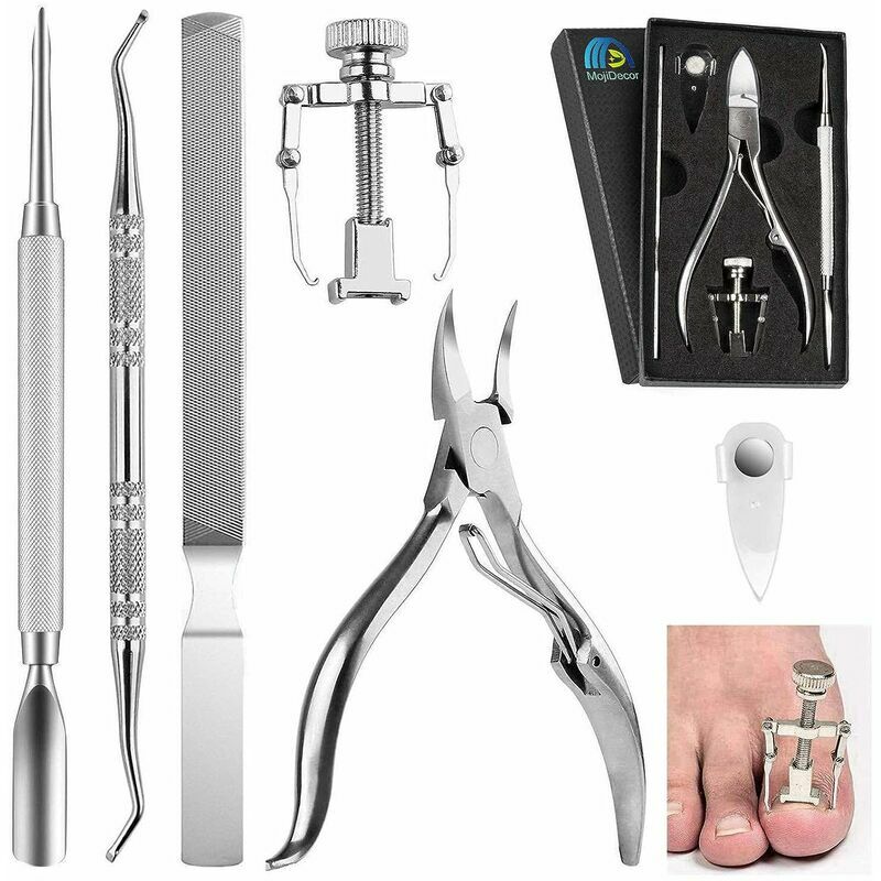 Set professionale per pedicure - : il correttore per unghie e lo strumento per la pulizia adottano un meccanismo a leva per modificare l'angolo di crescita delle unghie, prendersi cura delle unghie per mantenere le unghie sane. (Si consiglia un trattamento professionale per i pazienti con gravi unghie incarnite, non correggerle da soli.) Viene fornito con un design delicato, antiruggine, resistente alla corrosione e facile da disinfettare. Il doppio sollevatore per unghie aiuta a pulire lo sporco sotto l'unghia, solleva l'unghia, mantiene le unghie in ordine e previene futuri dolori incarniti e creste delle unghie in punti difficili da raggiungere e unghie spesse e deformate. E il disco a prova di schizzi impedisce alle unghie tagliate di volare dappertutto. 【Correttore per unghie incarnite】: il correttore per unghie dei piedi adotta un meccanismo a leva per modificare l'angolo di crescita delle unghie. Quindi l'unghia sarà appiattita e allargata e non crescerà nell'unghia del piede.