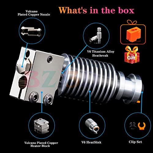 BZ 3D V6 Volcano All Metal Hotend,500 ℃ Ugello in Rame Placcato Volcano Blocco riscaldatore,Heatbreak lega di titanio per V6 Volcano Hotend,Prusa i3 MK2S MK3 MK3S Hotend Volcano.