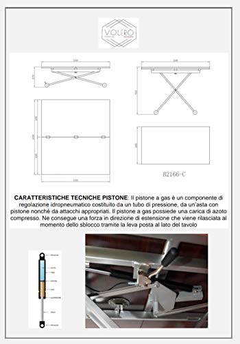 FUNZIONALITA': Manovre per la trasformazione del prodotto semplici, veloci ed agevoli. Sistema saliscendi funzionante tramite 2 pistoni ad olio e gas gestiti da una leva che sbloccandoli permette di alzare ed abbassare il tavolo all'altezza desiderata. Facilità negli spostamenti grazie a quattro ruote di cui due con freno. VOLERO' SHOPPING ONLINE offre assistenza telefonica e con video esplicativi 24 ore su 24.