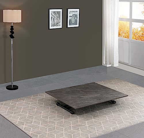 VOLERO' Tavolo Trasformabile Salvaspazio, Modello Ulisse Medium, Meccanismo Saliscendi con Regolazione Millimetrica dell'Altezza. (Grigio cemento)
