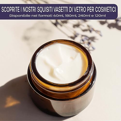 ☀️【 Protezione UV Contenitore Crema 】I vasetti vuoto cosmetici aiutano a mantenere i cosmetici al sicuro dai raggi del sole o dal calore. I barattoli con coperchio sono ideali per riporre cosmetici all'interno dell'armadietto dei medicinali o sopra le superfici di appoggio del bagno. Grazie al vetro ambrato dei vasetti si evitano eventuali discolorazioni o perdite di consistenza delle creme e dei profumi.