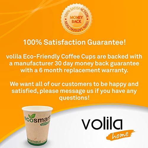 Volila Bicchieri ecologici usa e getta per bevande calde, con interno isotermico, tazze biodegradabili e compostabili per caffè, the e cioccolata calda- 227 ml- (pacchetto da 100)