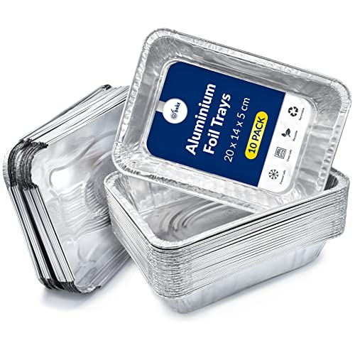 Volila Vaschette in Alluminio da asporto, teglie con Coperchio in Alluminio per Cucinare al Forno, conservare e congelare Alimenti- 1 litro di capienza (10 Pack)