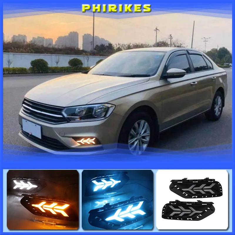 For Volkswagen Bora 2016-2018 LED DRL Daytime Running Light with Dynamic moving yellow turn signal and blue night light